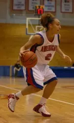 A three-pointer by freshman Talicia Jackson (Minneapolis, Minn./De La Salle) gave the underdog Eagles a 5-4 lead at the 18:28 mark of the first frame. American stepped up their defense and rebounding, expanding their lead to 17-12 at the halfway point of the first period. Five straight points from American's Ryan put the Eagles up by a 22-14 margin with 8:32 remaining in the half.
